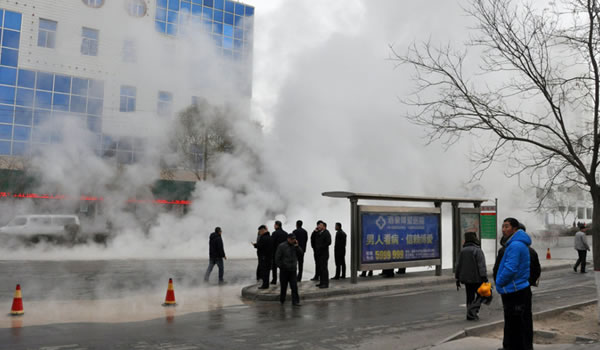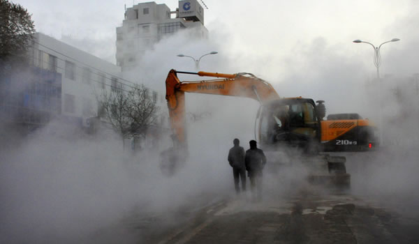 供熱管網(wǎng)發(fā)生泄漏現(xiàn)場